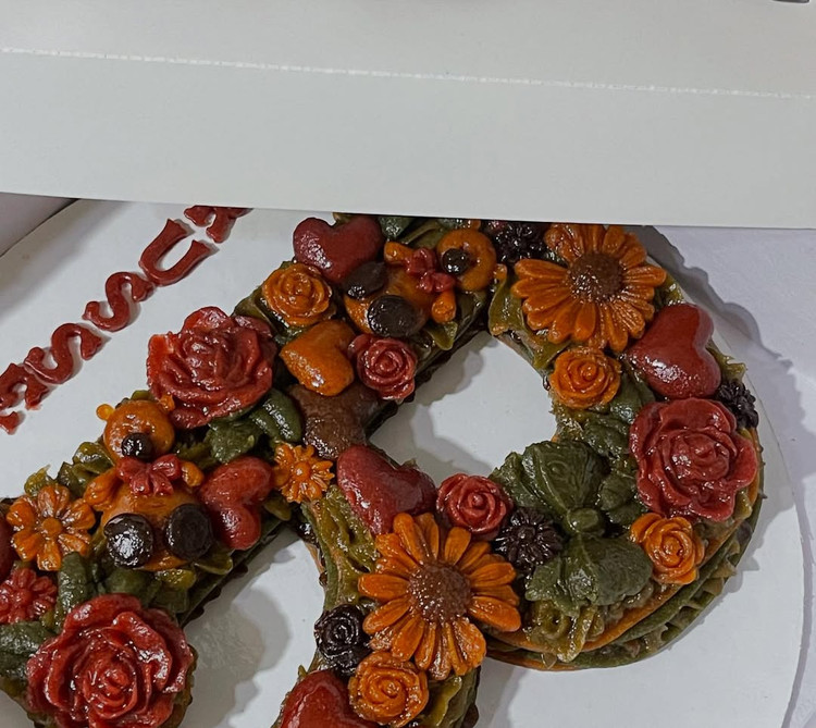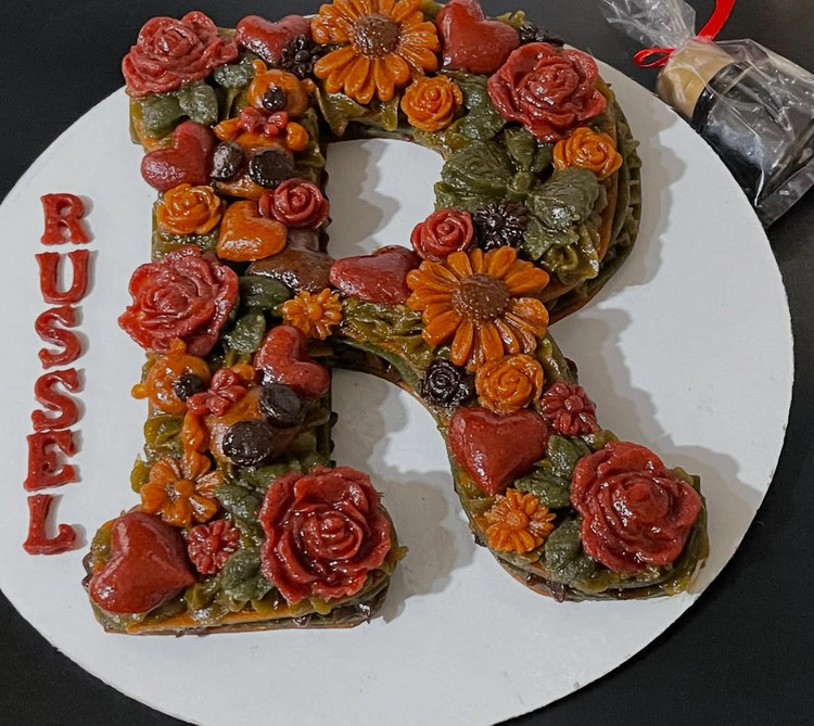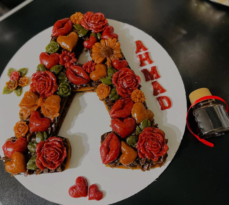 خاص تر از این نداریم*سابله حروف انگلیسی لواشک چندلایه با فیلینگ کرم ترش لواشک- و دیزاین گل های رزت (طبق سلیقه مشتری) جعبه کادویی و سس لواشک
