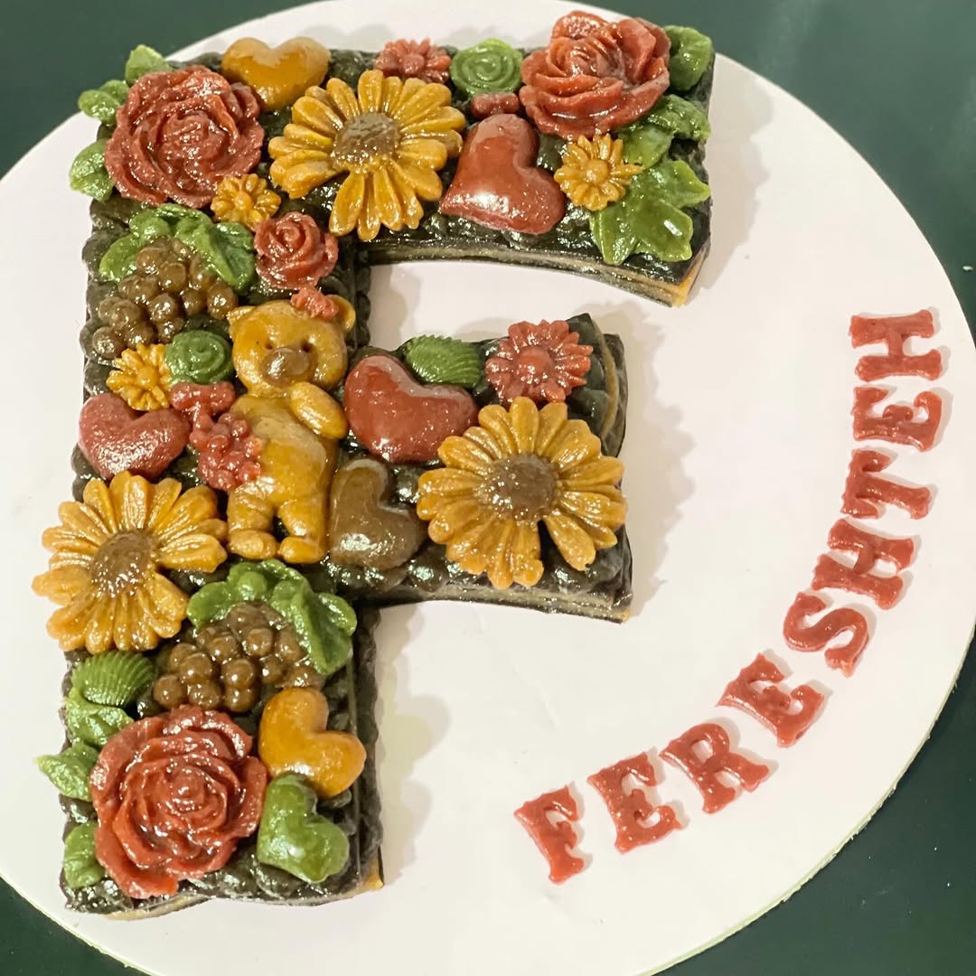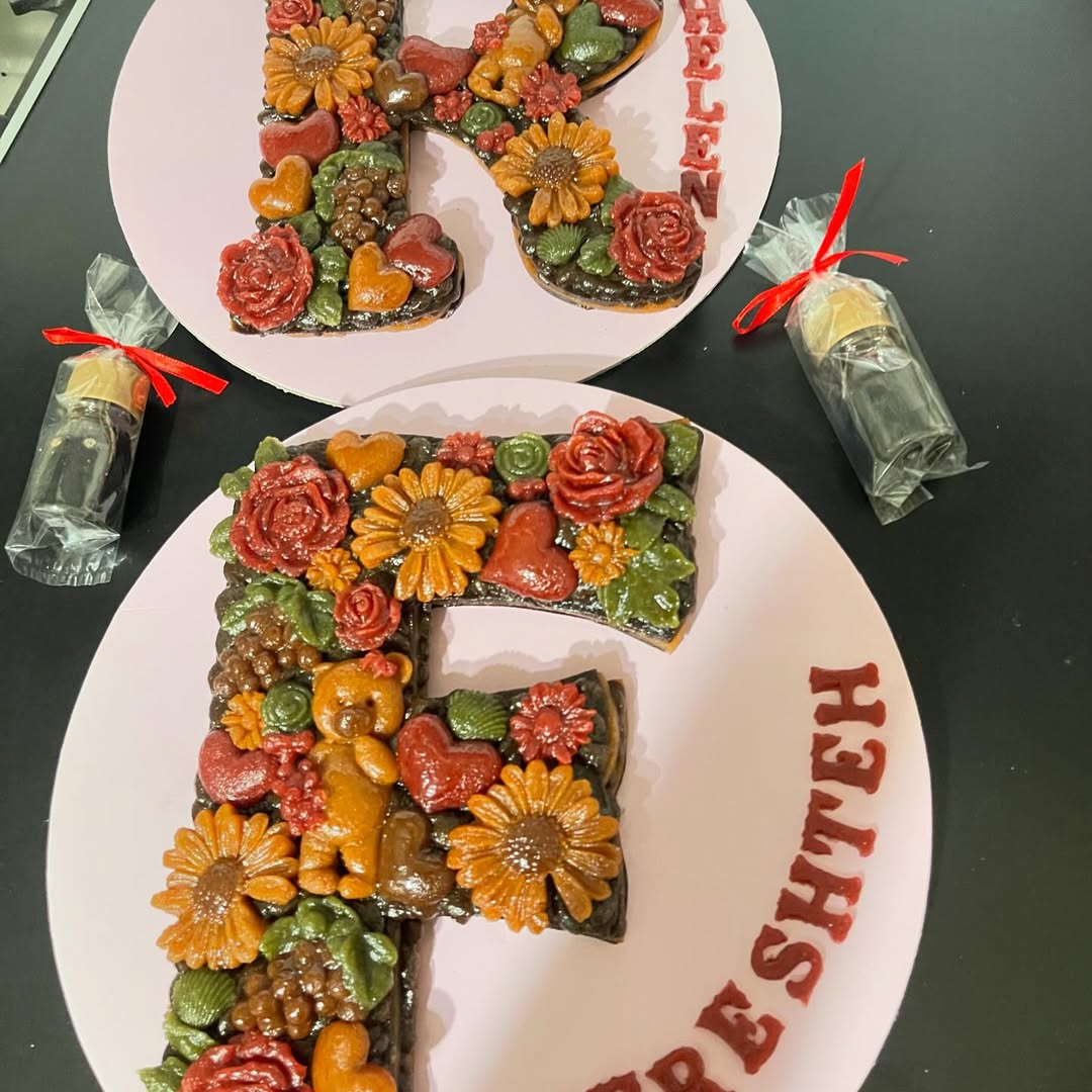 خاص تر از این نداریم*سابله حروف انگلیسی لواشک چندلایه با فیلینگ کرم ترش لواشک- و دیزاین گل های رزت (طبق سلیقه مشتری) جعبه کادویی و سس لواشک